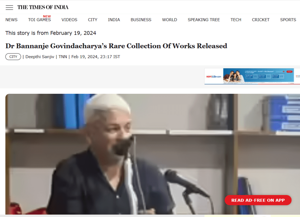 Dr Bannanje Govindacharya’s rare collection of works released