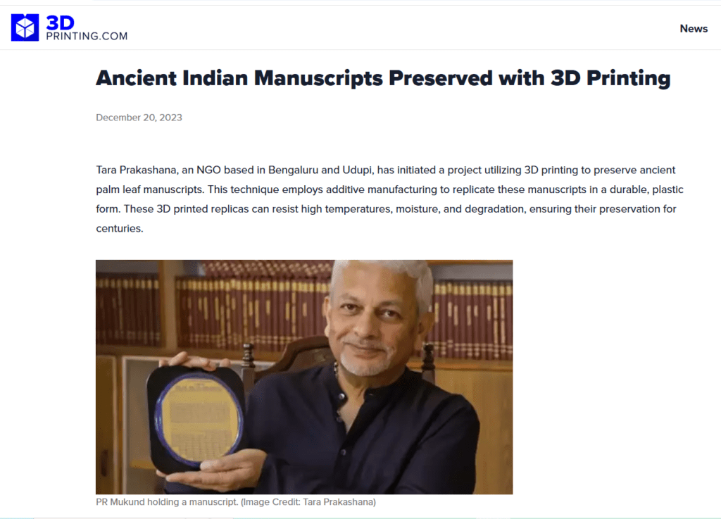 Ancient Indian Manuscripts Preserved with 3D Printing