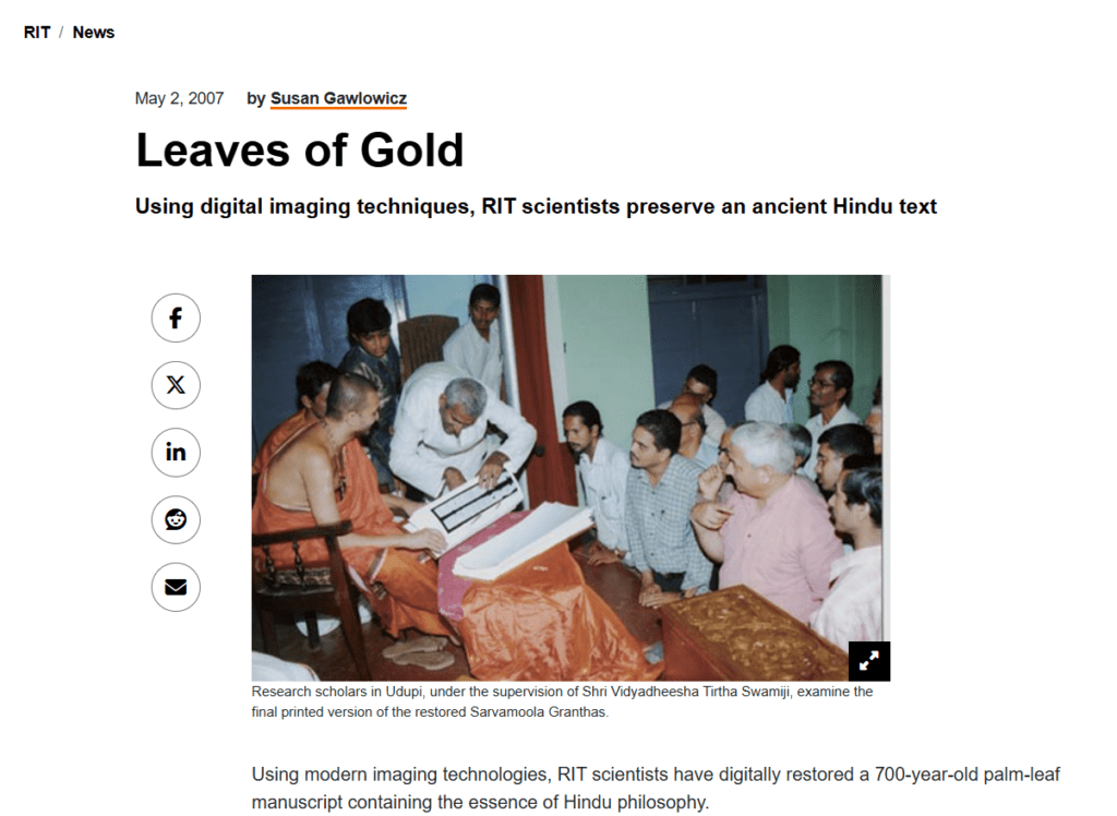 Imaging technology restores 700-year-old sacred Hindu text