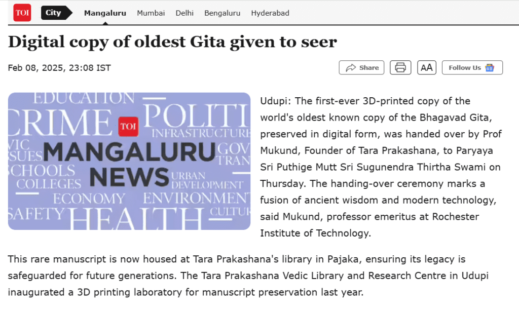 Digital copy of oldest Gita given to seer